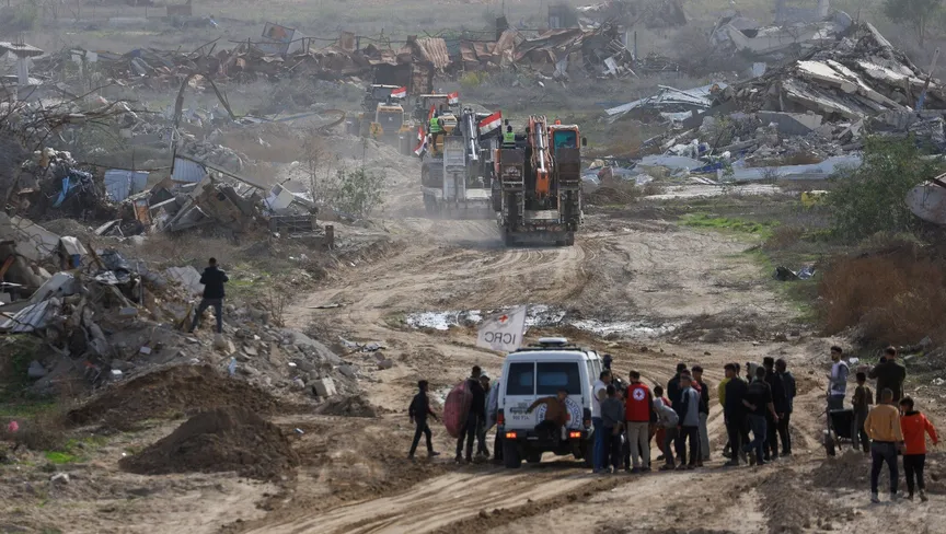 سيارات مصرية تدخل المنطقة الحمراء للبحث عن جثمان آخر محتجز إسرائيلي في مدينة غزة. 8 ديسمبر 2025 - Reuters