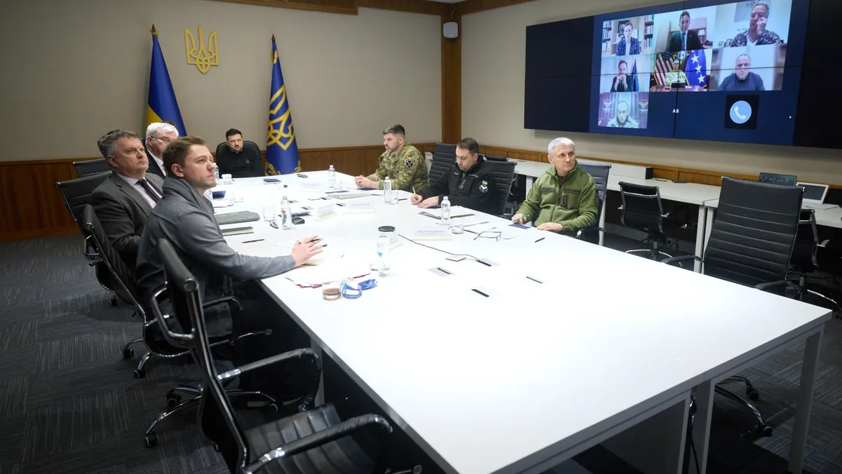 جاء ذلك خلال اجتماع عبر الفيديو، ضم من الجانب الأميركي وزير الخارجية ماركو روبيو، ووزير الحرب بيل هيجسيث، ومبعوث الرئيس ستيف ويتكوف، وصهره جاريد كوشنر، ورئيس هيئة الأركان المشتركة دان كين، وفي وجود الجنرال الأميركي أليكسوس جرينكويتش قائد قوات الناتو في أوروبا، والأمين العام لحلف الناتو مارك روته، حسبما ذكر زيلينسكي في منشور على منصة "إكس".