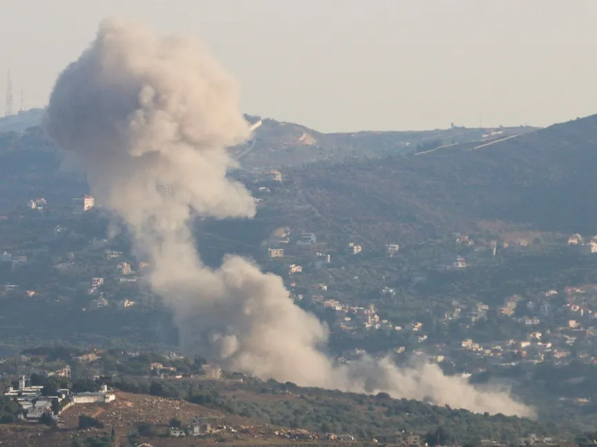 تصاعد الدخان من كفركلا في لبنان وسط اشتباكات عبر الحدود بين حزب الله والقوات الإسرائيلية. لبنان 6 أغسطس 2024 - Reuters