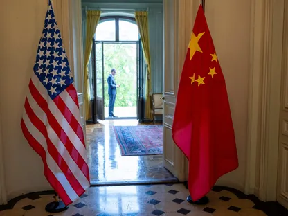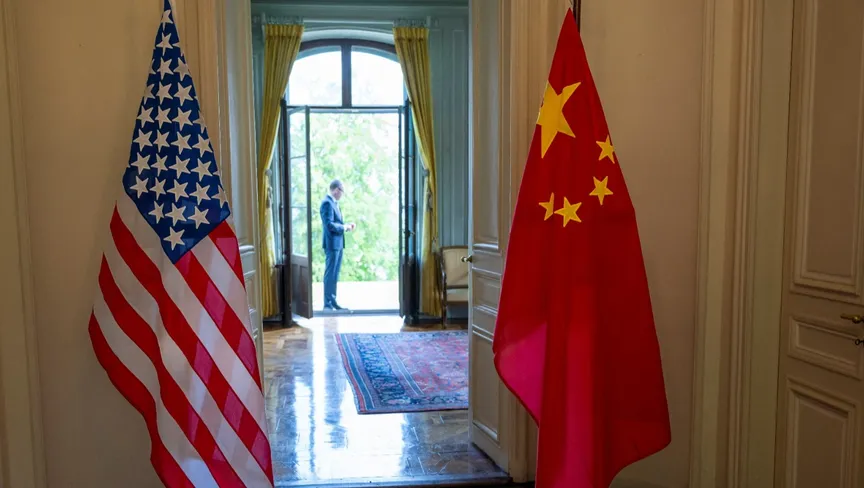 علما الصين وأميركا خلال اجتماع بين مسؤولين بالبلدين في العاصمة السويسرية جنيف. 10 مايو 2025 - REUTERS