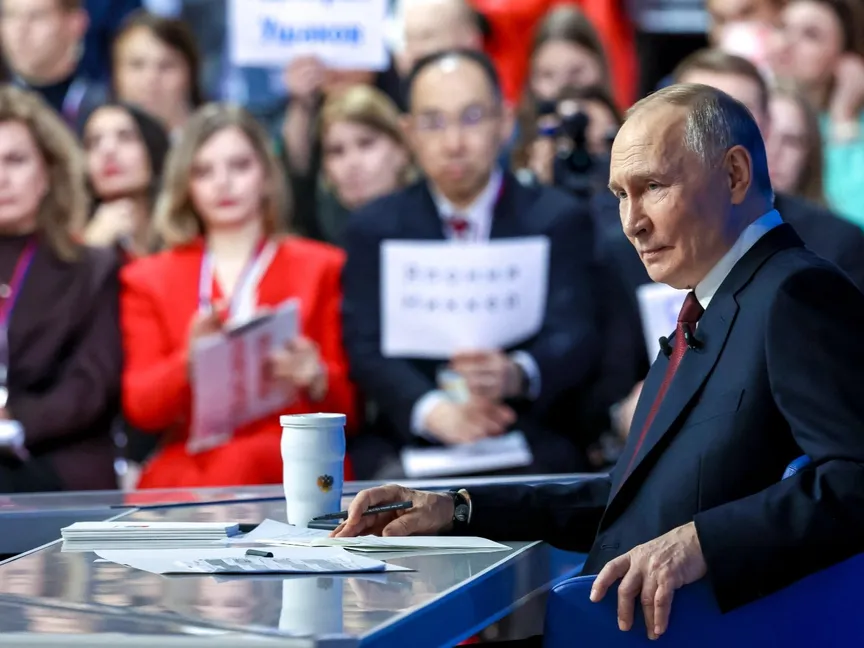 وأضاف بوتين في مؤتمر "نتائج العام" السنوي، الذي يجيب فيه عن أسئلة المواطنين والإعلام، أن موسكو لا ترى أن أوكرانيا مستعدة للتسوية، أو تقديم تنازلات بشأن الأراضي، مضيفاً أن قواته "تواصل التقدم على طول خط التماس على الجبهة".