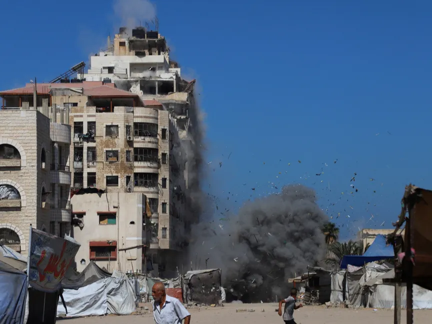 غارة جوية إسرائيلية على مبنى تم إخلاؤه كان يؤوي فلسطينيين نازحين في مدينة غزة. 14 سبتمبر 2025 - Reuters