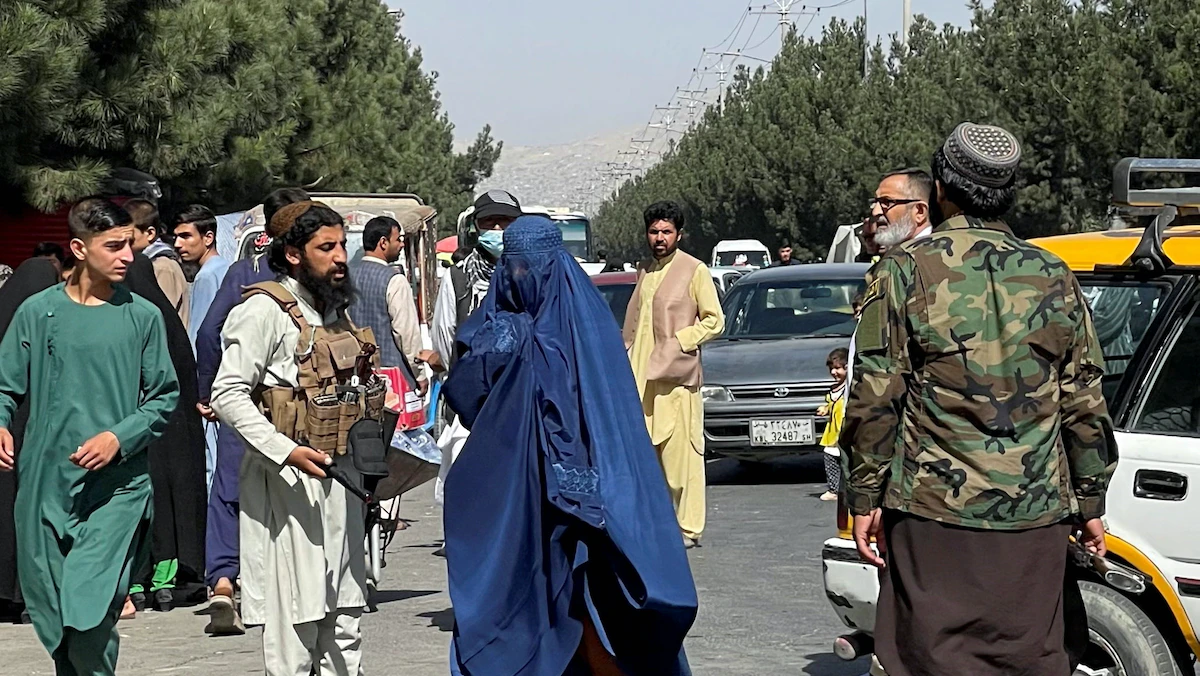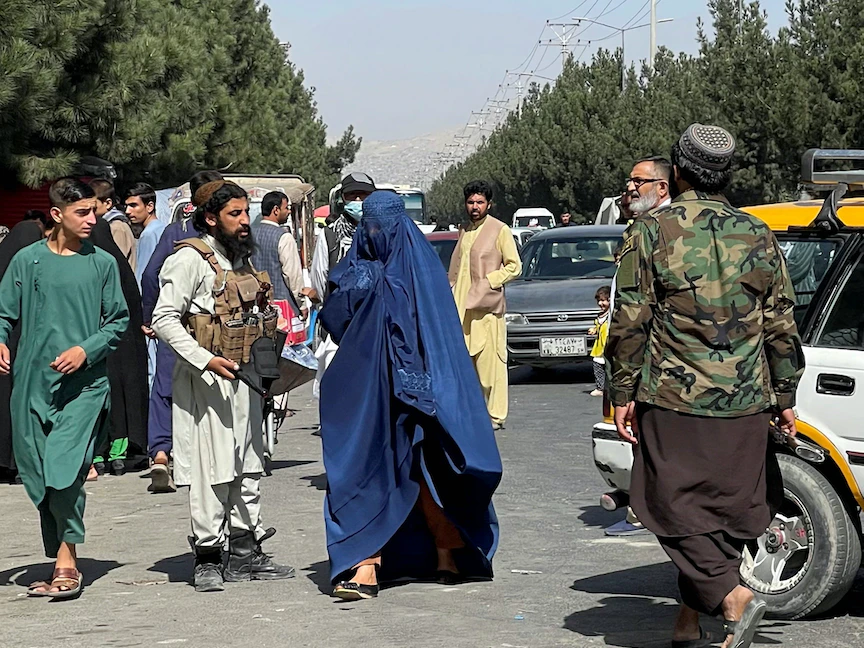 امرأة تمر أمام قوات طالبان في أحد شوارع كابول 27 أغسطس 2021 - REUTERS