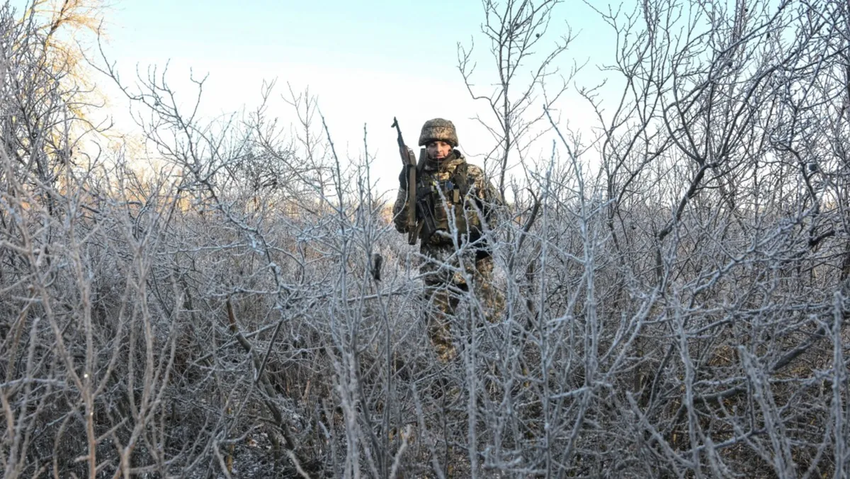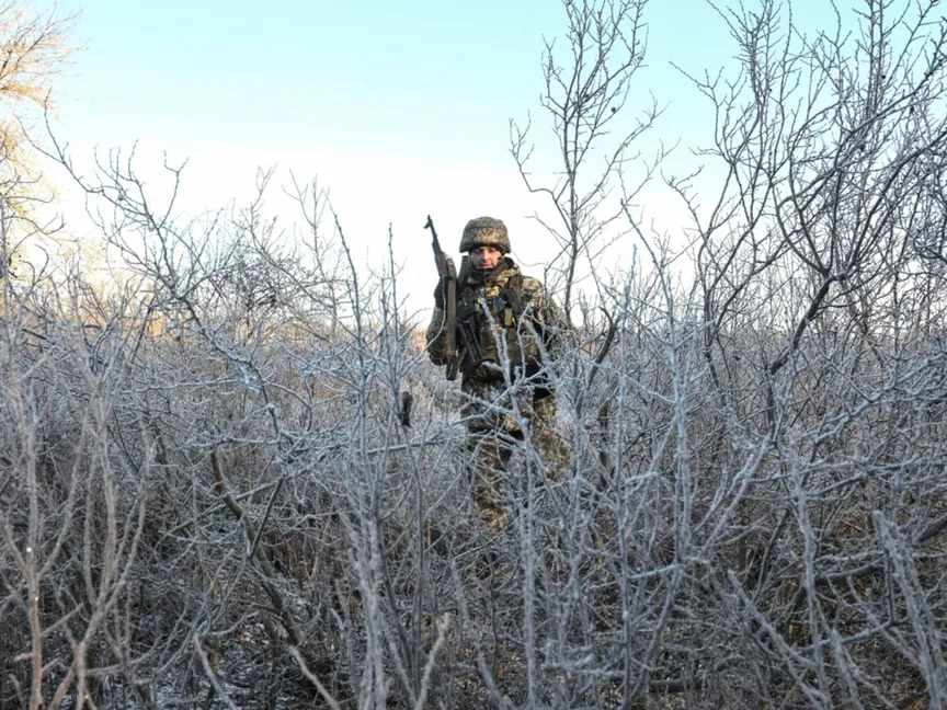 جندي أوكراني يسير بين الأشجار قرب خط المواجهة في منطقة دونيتسك، أوكرانيا. 25 ديسمبر 2025 - REUTERS