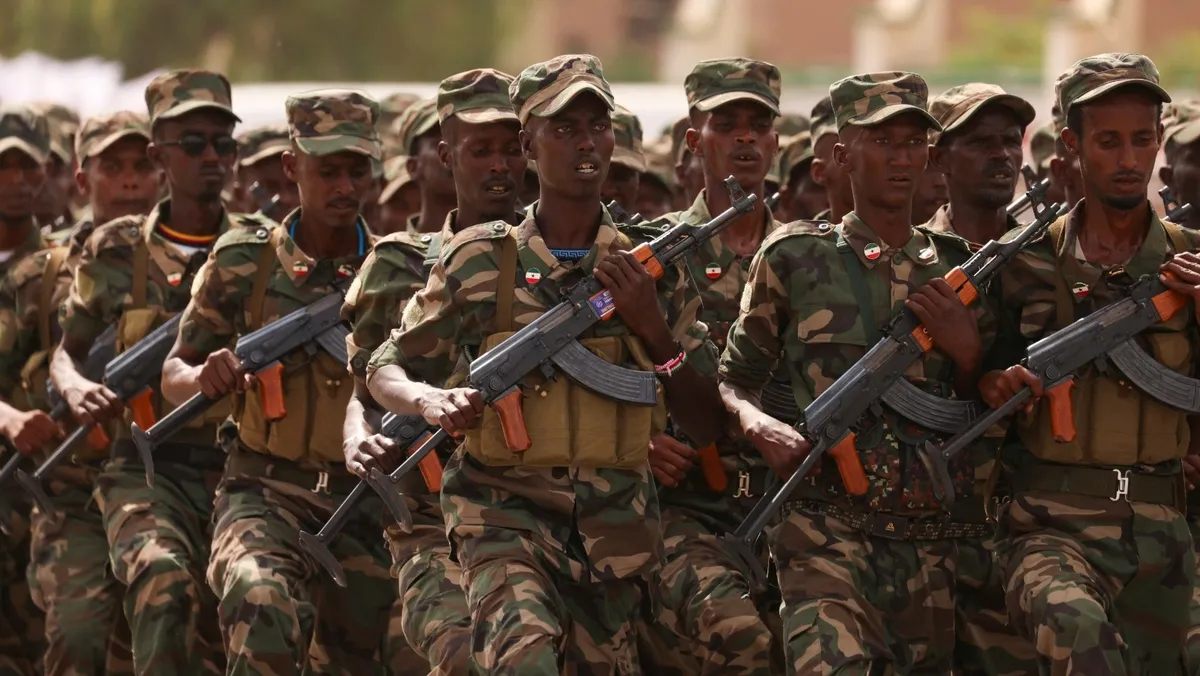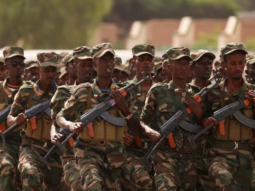 قوات تابعة لحكومة إقليم أرض الصومال الانفصالي في عرض عسكري، هرجيسا، أرض الصومال. 18 مايو 2024 - REUTERS