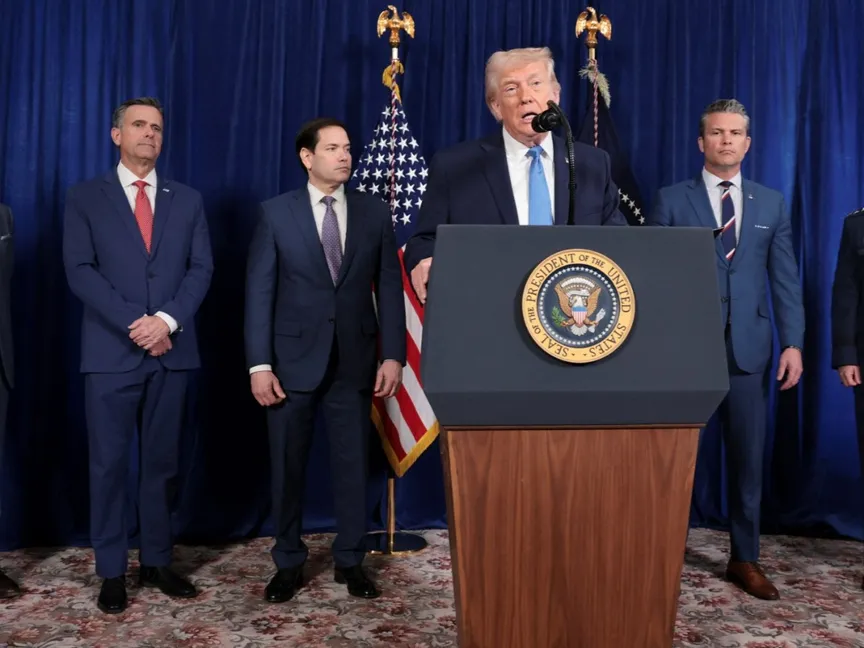 وأضاف ترمب وهو يتحدث بجانب وزير الخارجية ماركو روبيو ووزير الحرب بيت هيجسيث ورئيس هيئة الأركان دان كاين: "إلى حد كبير، ولمدة من الزمن، سيكون الأشخاص الذين يقفون خلفي مباشرة هم من سيديرون الأمر".