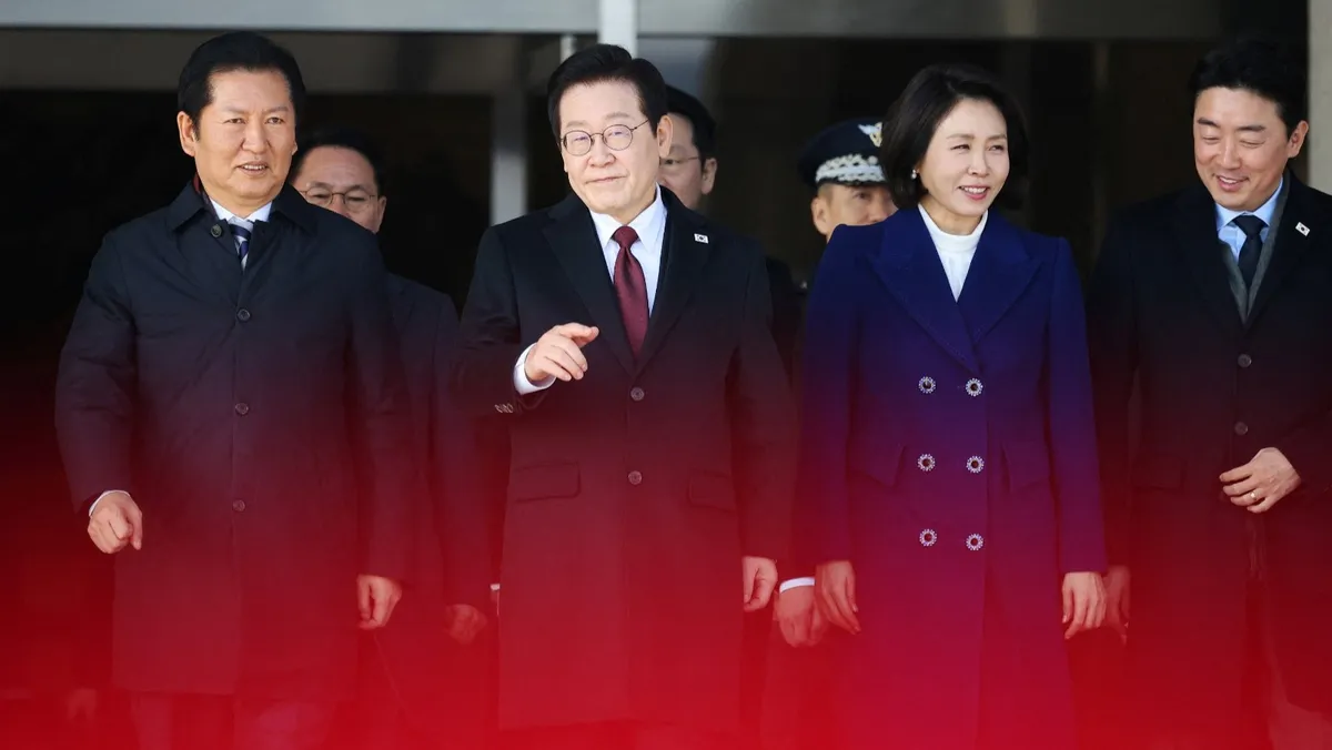 الرئيس الكوري الجنوبي لي جاي ميونج وزوجته كيم هاي كيونج يصلان إلى قاعدة سول الجوية في سيونجنام بكوريا الجنوبية قبل التوجه إلى الصين. 4 يناير 2026 - Reuters