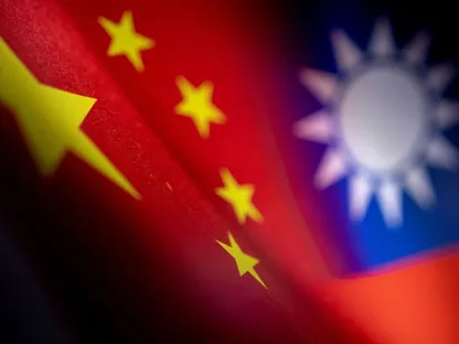 صورة مركبة لعلمي الصين وتايوان في رسم توضيحي. 28 أبريل 2022 - REUTERS