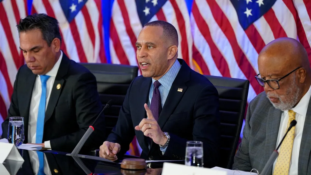 وقال زعيم الأقلية الديمقراطية في مجلس النواب، حكيم جيفريز، للصحافيين الأربعاء: "علينا أن نأخذ كلامه على محمل الجد، فالرئيس جاد للغاية في مسألة غزو دول أخرى".