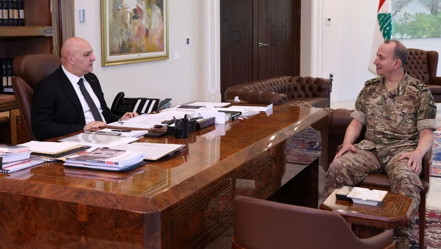 قائد الجيش اللبناني رودولف هيكل يطلع الرئيس جوزاف عون على نتائج الجولة التي قام بها رؤساء البعثات الديبلوماسية في أماكن انتشار الجيش اللبناني في جنوب الليطاني. 17 ديسمبر 2025 - REUTERS
