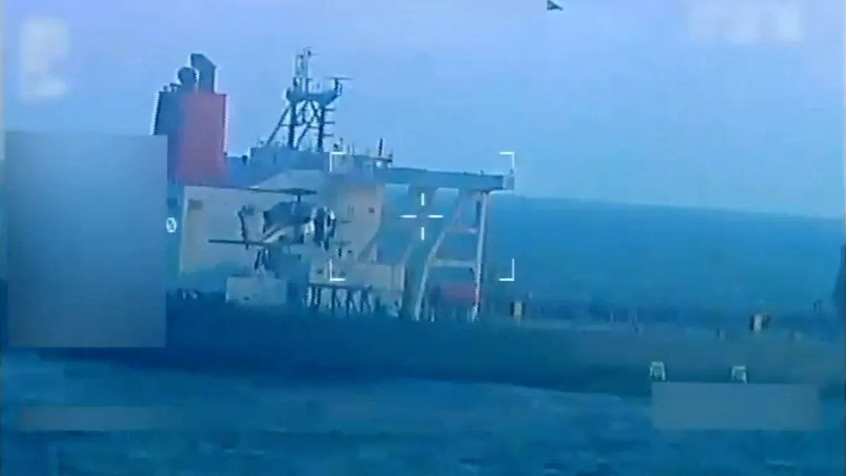 مروحية عسكرية أميركية تحلق بالقرب من ناقلة نفط خلال عملية استيلاء على ناقلة قبالة سواحل فنزويلا. 10 ديسمبر 2025 - reuters