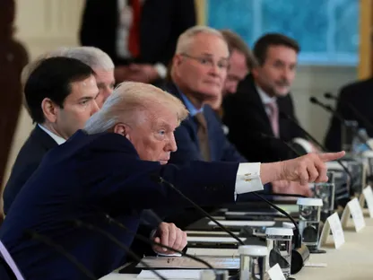 الرئيس الأميركي دونالد ترمب خلال اجتماع مع مسؤولين تنفيذيين في قطاع النفط بالبيت الأبيض، واشنطن، الولايات المتحدة. 9 يناير 2026 - Reuters