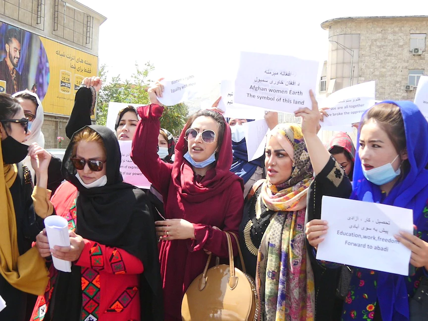 وشدد مجلس حقوق الإنسان خلال اجتماع خاص عن أفغانستان، على أن معاملة حركة طالبان للنساء ستشكل "خطاً أحمر". واعتبرت هيئة الأمم المتحدة لتمكين المرأة أن أفغانستان تواجه "حالة طوارئ تتعلق بالمساواة بين الجنسين".