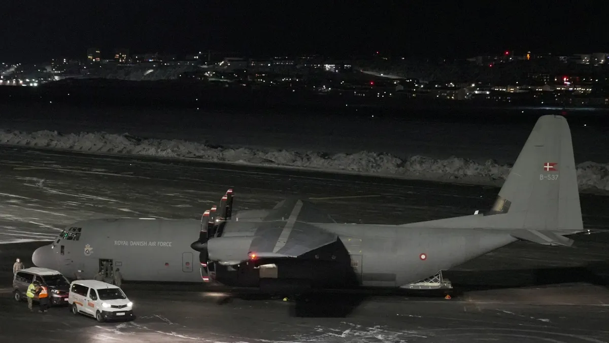 هبوط طائرة تابعة لسلاح الجو الملكي الدنماركي تنقل جنوداً في مطار نوك بجرينلاند. 14 يناير 2026 - REUTERS
