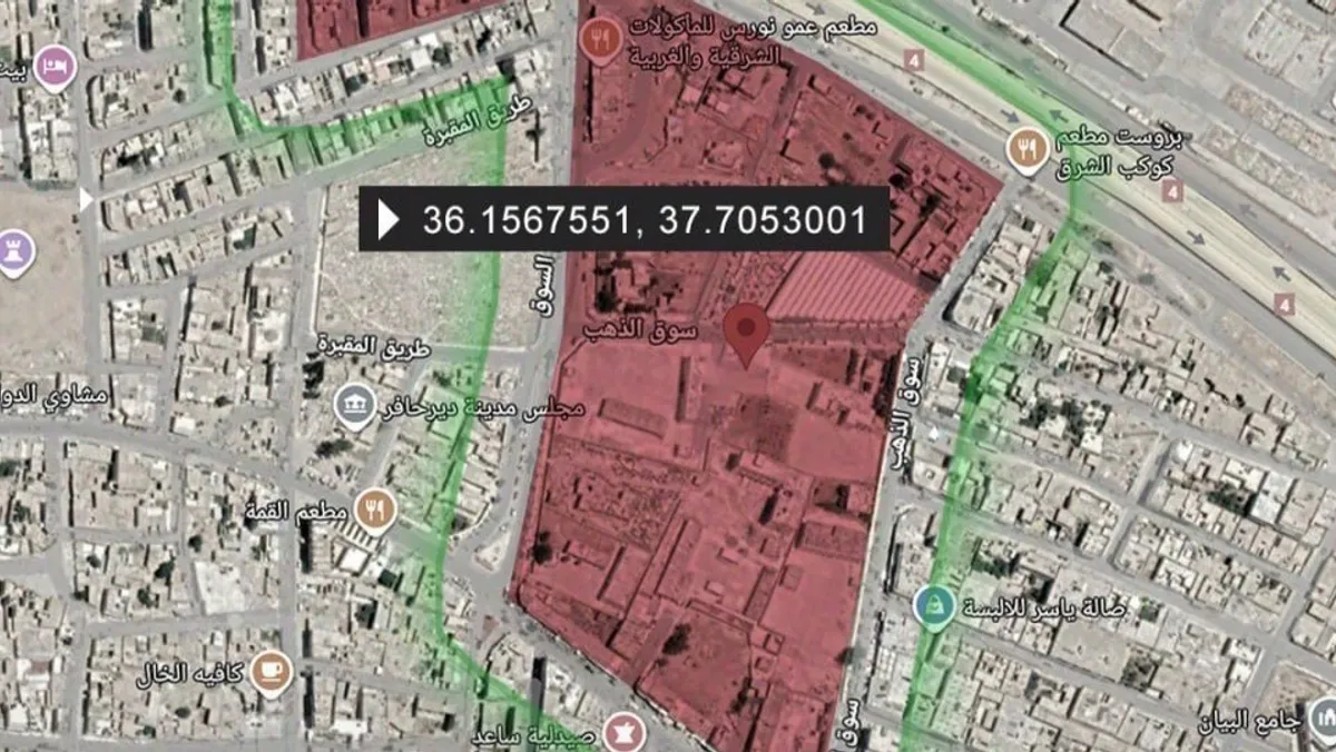 ونشر الجيش السوري خريطة لمواقع في دير حافر بشرق حلب، وقال إن حلفاء "قسد" يتخذون منها منطلقا لعملياتهم وقواعد لإطلاق المسيرات، وطالب المدنيين بالابتعاد عنها.