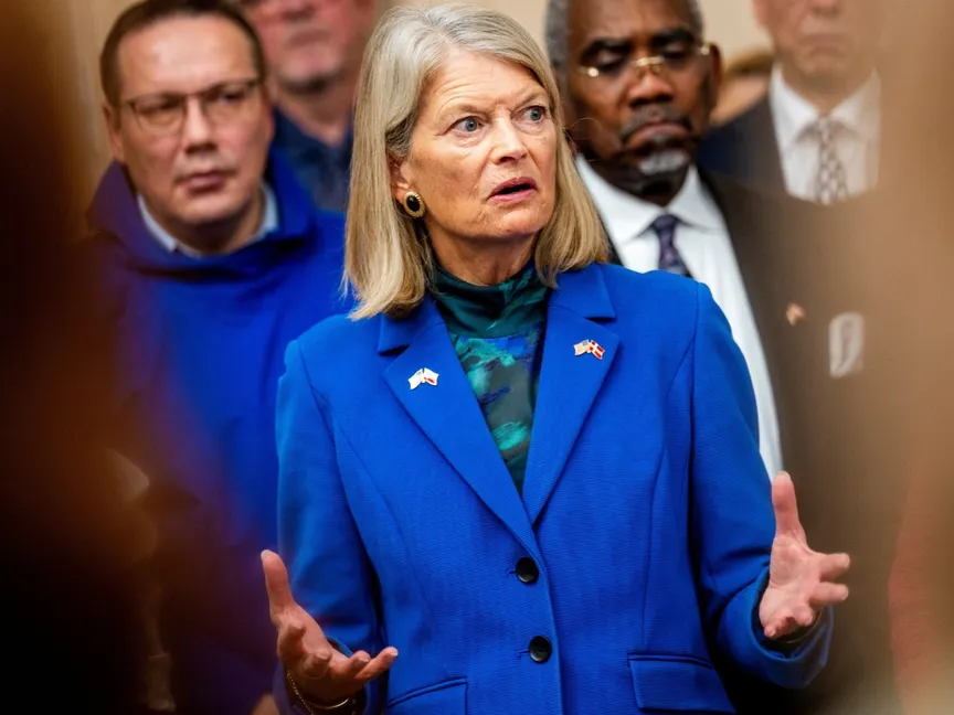 ليزا ميركاوسكي تتحدث في مؤتمر صحافي عقب اجتماع بين أعضاء البرلمان الدنماركي ولجنة من جرينلاند وأعضاء الكونجرس في كوبنهاجن. الدنمارك في 16 يناير 2026 - reuters