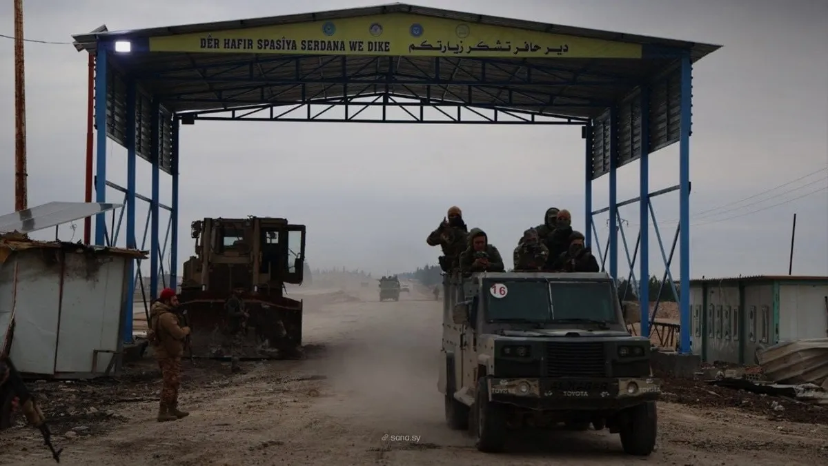 بدأ الجيش السوري، السبت، بالدخول إلى منطقة غرب الفرات انطلاقاً من مدينة دير حافر بريف حلب، فيما دعا المدنيين إلى عدم الدخول إلى منطقة العمليات (المحددة مسبقاً) إلى حين الانتهاء من تأمينها وإزالة الألغام والمخلفات الحربية منها بعد انسحاب قوات سوريا الديمقراطية "قسد".