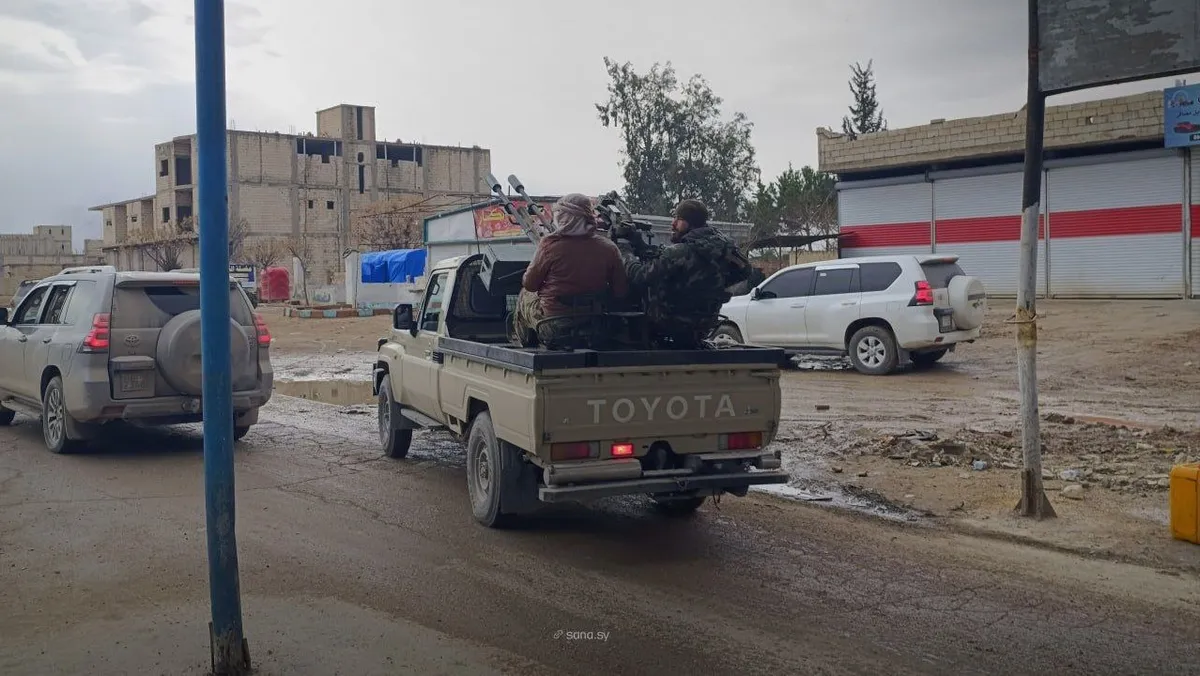 كما أكدت أن قوات الجيش تواصل التقدم ودخول المناطق من دون استهداف عناصر وآليات قوات سوريا الديمقراطية، وذلك التزاماً بتعميم صادر عن هيئة العمليات، فيما قالت "قسد" إن اشتباكات اندلعت مع قوات الجيش بمدينة مسكنة نتيجة "خروقات" الحكومة للاتفاق، مشيرة إلى أن "وقف الاشتباكات يتطلب الالتزام الكامل بالاتفاق من الحكومة السورية حتى إتمام انسحاب مقاتلينا".