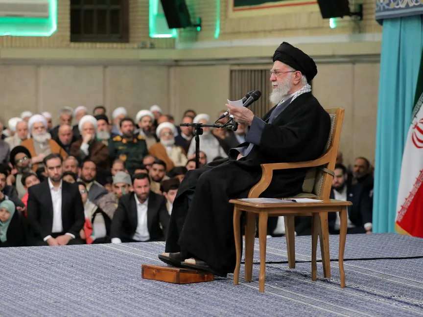 المرشد الإيراني علي خامنئي يتحدث خلال اجتماع في بالعاصمة طهران. 17 يناير 2026 - REUTERS