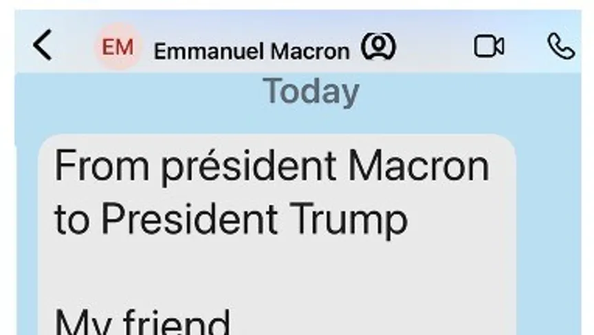 وقال مصدر مقرب من الرئيس الفرنسي إيمانويل ماكرون صباح الثلاثاء، إن الرسالة النصية التي نشرها ترمب في "تروث سوشيال" على شكل لقطة شاشة صحيحة.