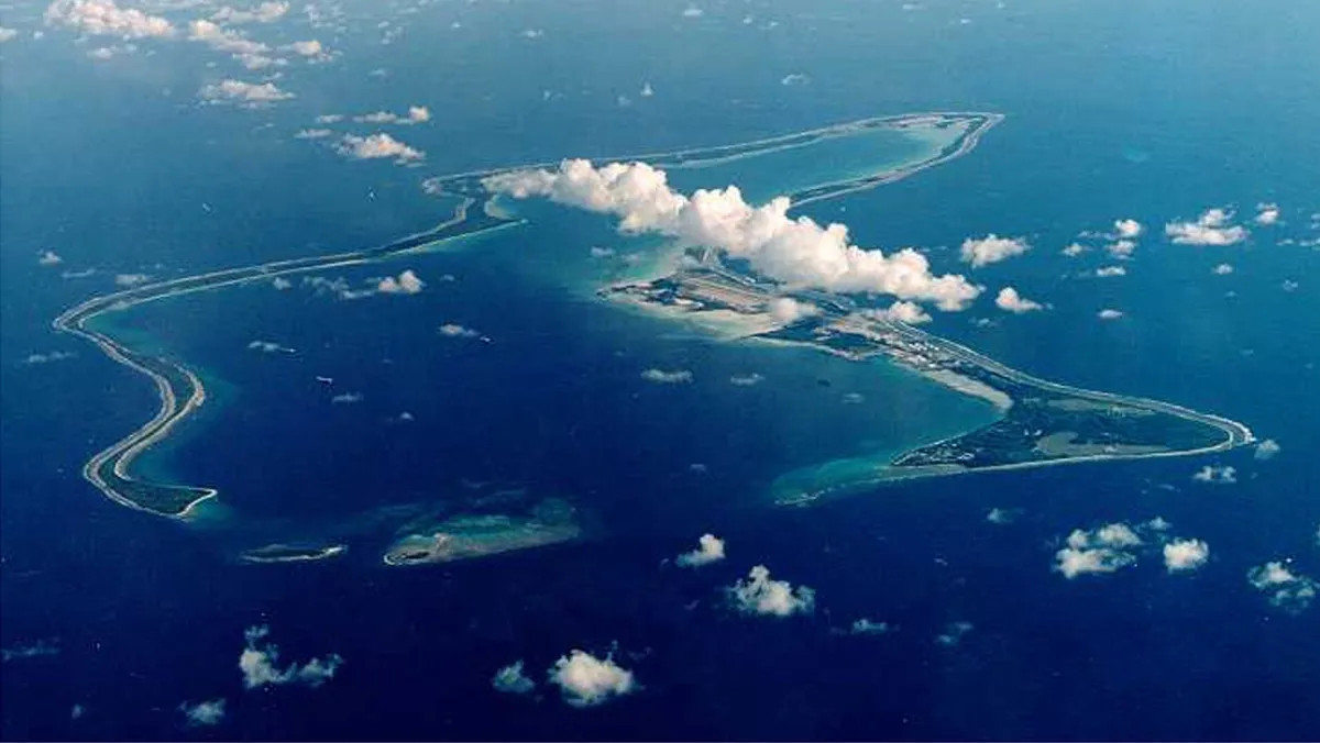 صورة غير مؤرخة تظهر جزيرة دييجو جارسيا أكبر جزيرة في أرخبيل تشاجوس وموقع قاعدة عسكرية أميركية في وسط المحيط الهندي استأجرتها من بريطانيا عام 1966 - reuters