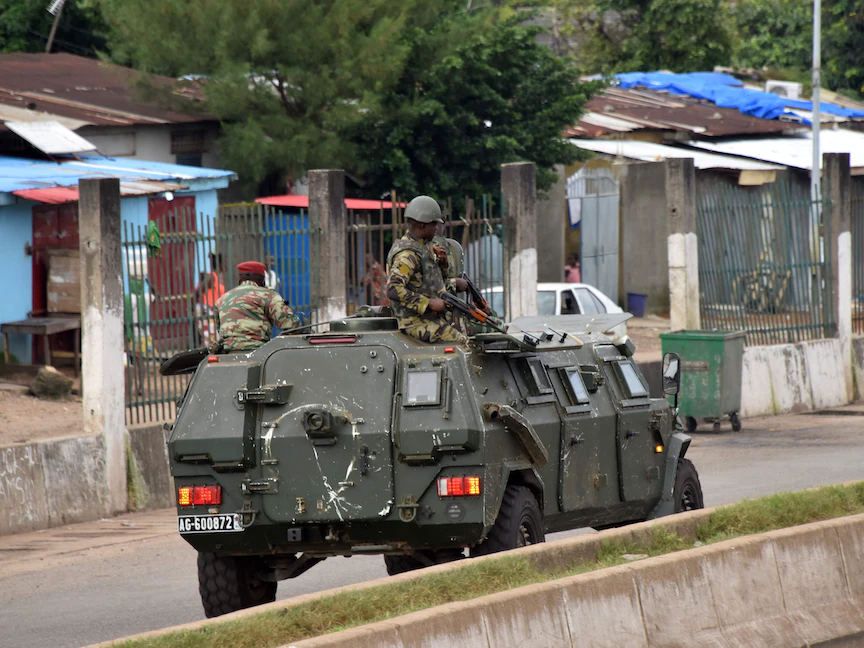 مركبة تقل عناصر من الجيش الغيني في العاصمة كوناكري. 5 سبتمبر 2021. - AFP