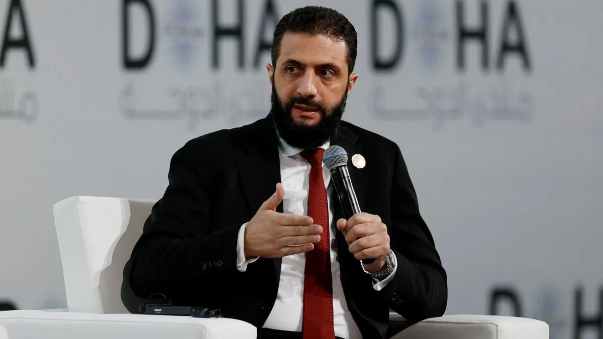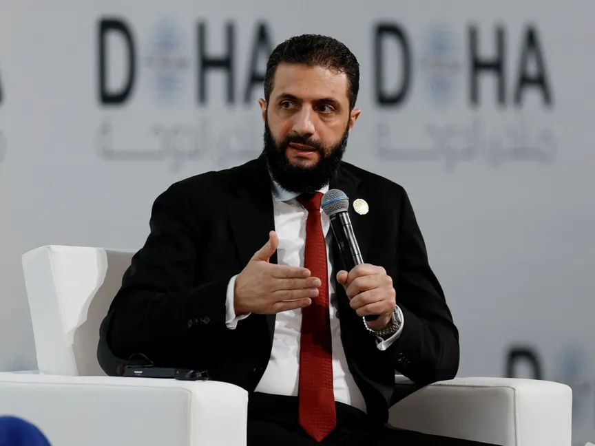 الرئيس السوري أحمد الشرع يتحدث أثناء حضوره منتدى الدوحة السنوي في الدوحة. قطر في 6 ديسمبر 2025 - reuters