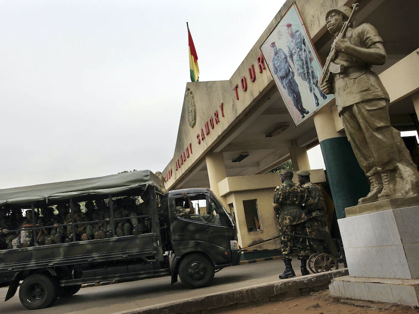 وتولى القائد العسكري سيكوبي كوناتي الحكم بالنيابة خلفاً للرئيس كامارا الذي اختار البقاء في المنفى ببوركينا فاسو، بينما اندلعت احتجاجات عنيفة في أرجاء البلاد أسفرت عن مقتل 150 شخصاً، بحسب الأمم المتحدة.
