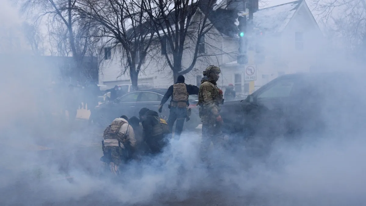 وشهدت حملة ترمب على الهجرة انتشار نحو 3 آلاف عنصر اتحادي ملثمين ومسلحين في مدينة مينيابوليس، حيث يعتقلون المشتبه بهم الذين يصفونهم بـ"مجرمين خطرين مخالفين لقوانين الهجرة"، بينما أمسكوا في بعض الأحيان مواطنين أميركيين ومهاجرين ملتزمين بالقانون.