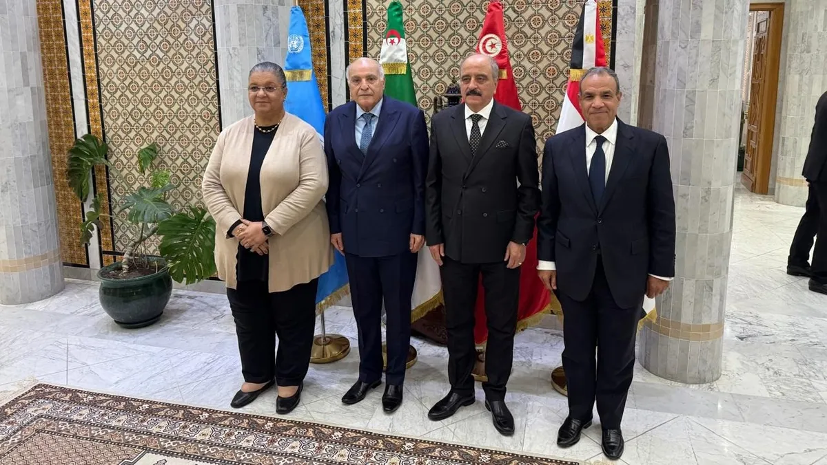 وبحث وزراء خارجية الدول الثلاث، مصر بدر عبد العاطي، وتونس محمد النفطي، والجزائر أحمد عطاف، في تونس، آخر تطورات الأزمة الليبية وسبل الدفع نحو تسوية سياسية شاملة، وذلك في حضور المبعوثة الخاصة للأمين العام للأمم المتحدة لدى ليبيا هانا تيته، وفق بيان وزارة الخارجية المصرية.