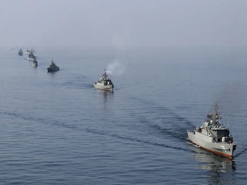 صورة غير مؤرخة لسفن تابعة للبحرية الإيرانية في مياه الخليج العربي قرب مضيق هرمز - REUTERS