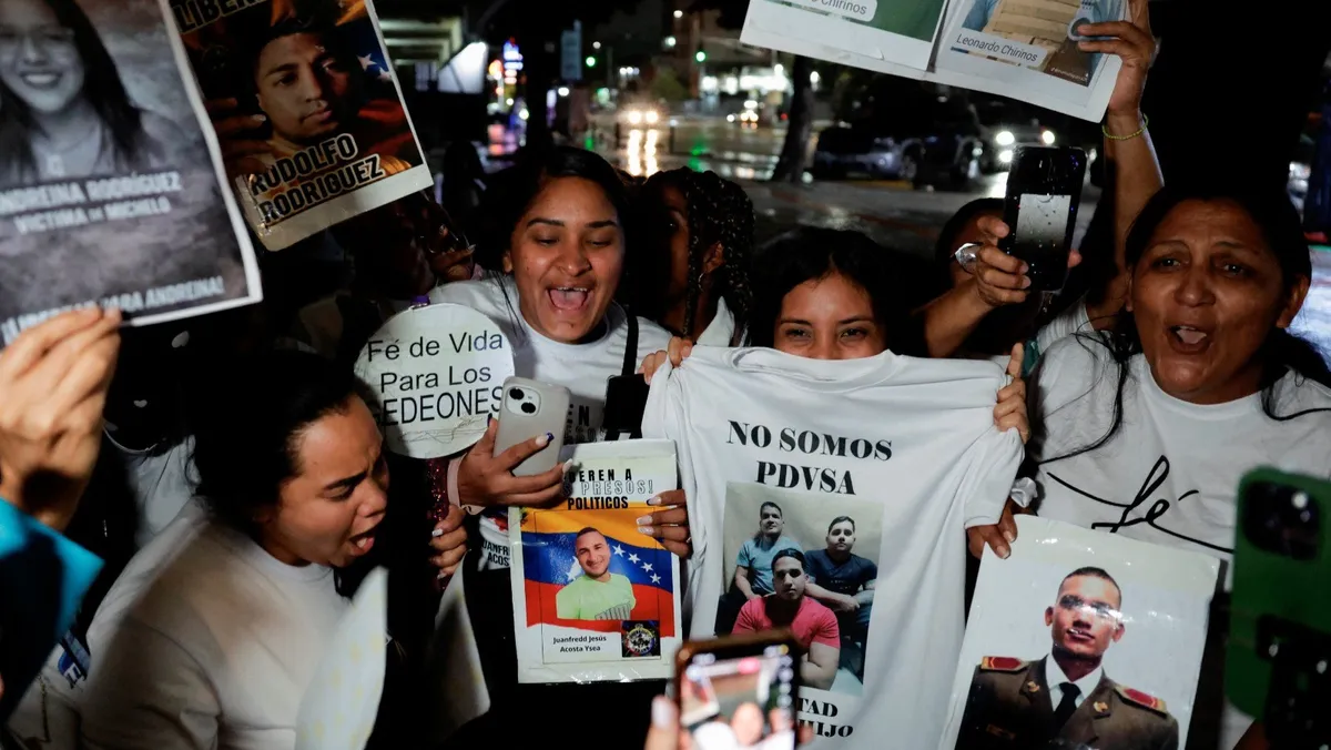 وخارج مركز احتجاز آخر في كاراكاس، انضم إدوارد أوكاريس، الذي احتُجز لأكثر من 5 أشهر بعد انتخابات عام 2024، إلى أقارب السجناء للمطالبة بالإفراج الفوري عن ذويهم.