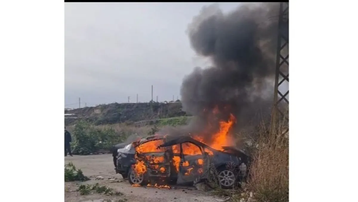 مسيرة إسرائيلية تستهدف سيارة على طريق الزهراني في جنوب لبنان. 21 يناير 2026 - الوكالة الوطنية للإعلام
