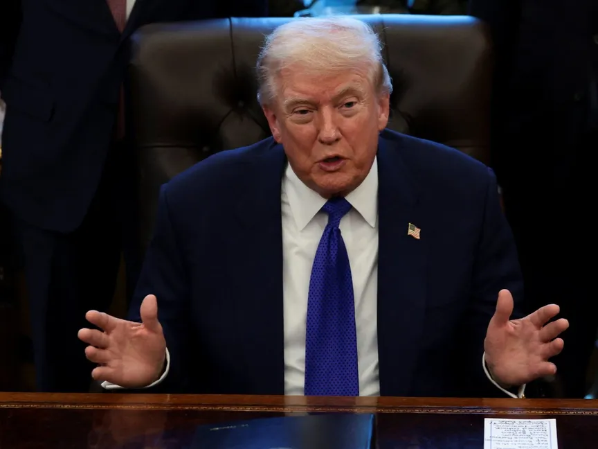 الرئيس الأميركي دونالد ترمب يتحدث في اليوم الذي أعلن فيه إنشاء احتياطي للمعادن الحيوية  في المكتب البيضاوي بالبيت الأبيض. 2 فبراير 2026 - Reuters