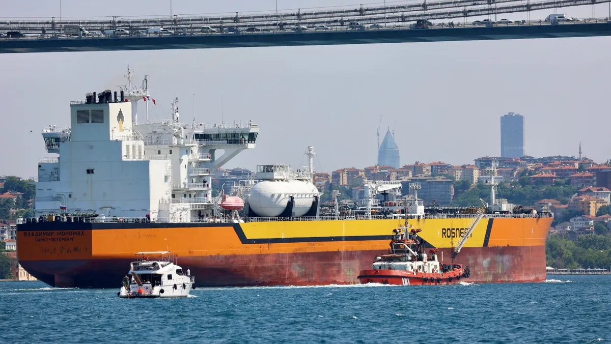 وتُصدر روسيا أكثر من ثلث نفطها عبر ناقلات، معظمها إلى الهند والصين، بالاعتماد على خدمات الشحن الغربية. وسيؤدي الحظر إلى إنهاء هذه التجارة، التي تتم في الغالب عبر أساطيل دول بالاتحاد الأوروبي، بما في ذلك اليونان وقبرص ومالطا.