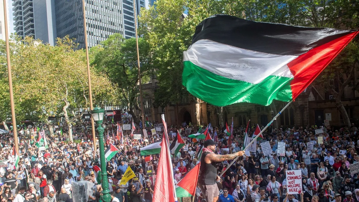تجمع الآلاف في أنحاء أستراليا، الاثنين، احتجاجاً على وصول الرئيس الإسرائيلي إسحق هرتسوج، الذي يقوم بزيارة إلى عدة مدن بهدف التعبير عن تضامنه مع اليهود في أستراليا، وذلك بعد حادث إطلاق نار جماعي وقع العام الماضي.