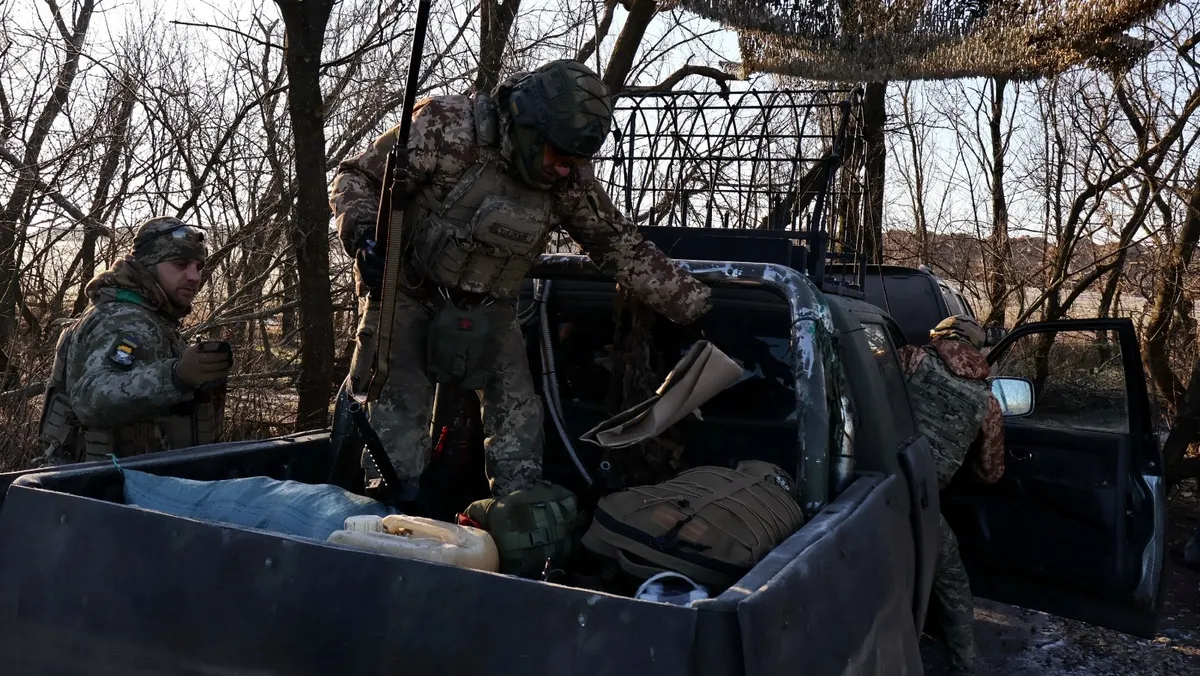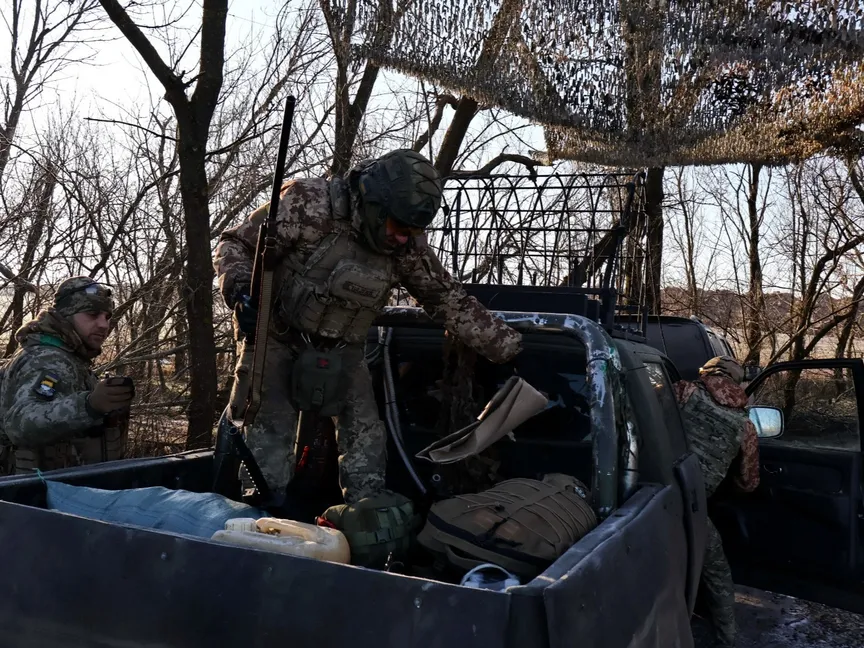 جنود أوكرانيون في طريقهم إلى مهمة قتالية قرب خط المواجهة مع روسيا بمنطقة زابوروجيا. 10 فبراير 2026 - Reuters