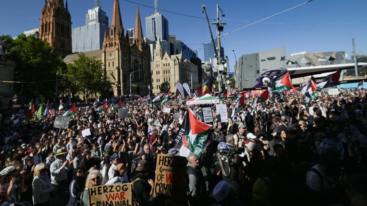 وفي الحي التجاري المركزي لملبورن، تجمع حشد كبير منذ مساء الخميس خارج إحدى محطات القطار الرئيسية في المدينة. وارتدى كثير من المتظاهرين الكوفية ولوّحوا بالأعلام الفلسطينية.