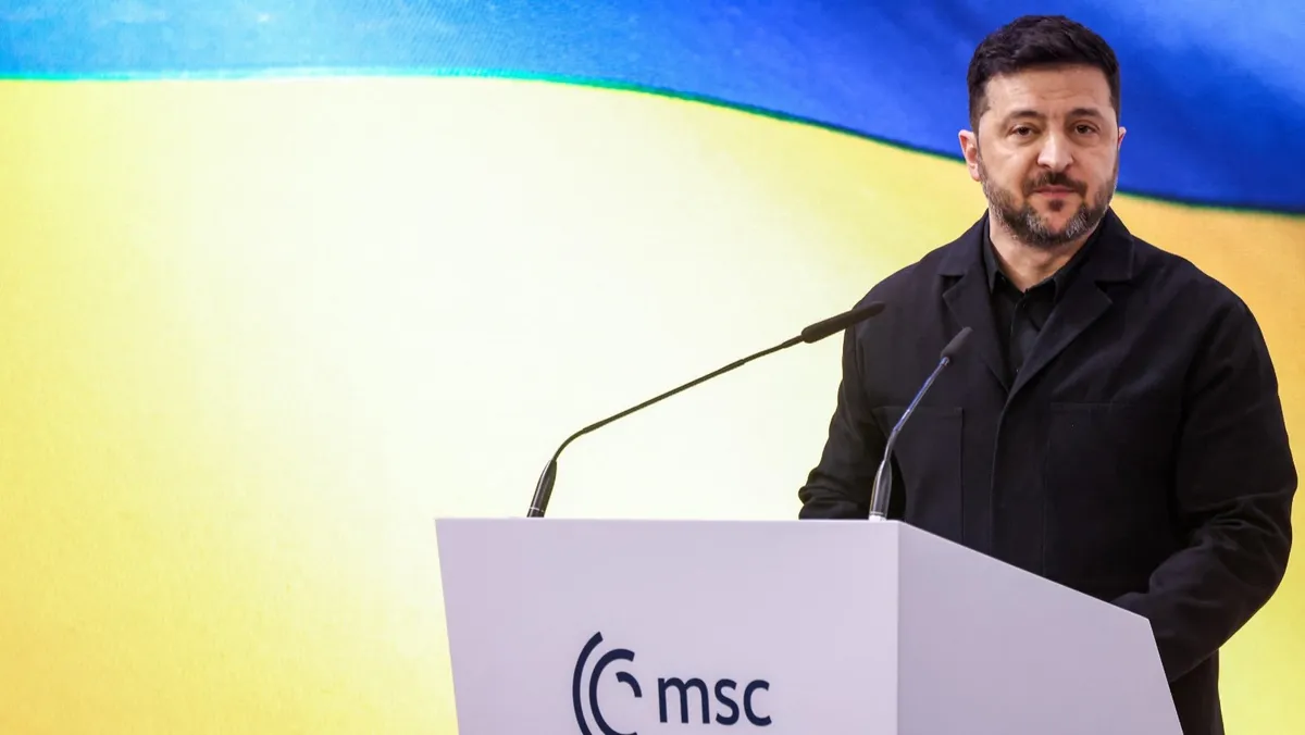 وأضاف زيلينسكي في كلمة له خلال مشاركته بمؤتمر ميونخ للأمن: "يجب إيقاف النظام الإيراني فوراً"، متطرقاً إلى الوضع في إيران، ومستشهداً بالمظاهرات التي شهدتها ميونيخ والمطالبة بتغيير النظام هناك.