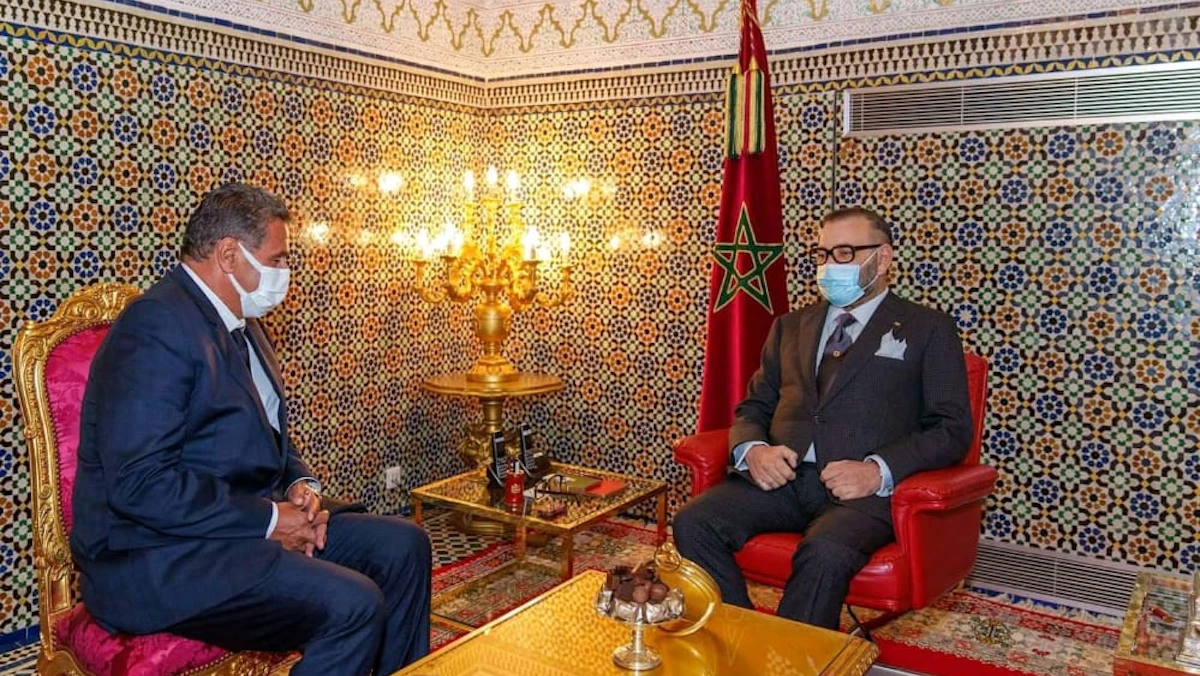 العاهل المغربي محمد السادس خلال استقباله عزيز أخنوش رئيس الحكومة الجديد - الشرق