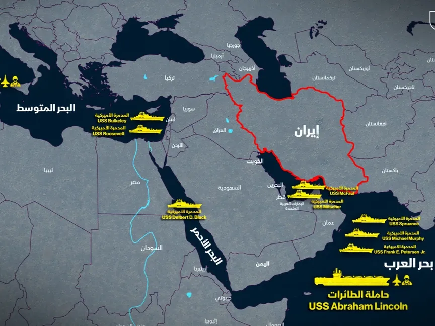 وقد تعقّب فريق BBC Verify الآن 12 سفينة أميركية في الشرق الأوسط، من بينها "أبراهام لينكون"، وهي حاملة طائرات نووية من طراز نيميتز، وتشكل مع ثلاث مدمرات من طراز Arleigh Burke مجموعة قتالية لحاملة طائرات.