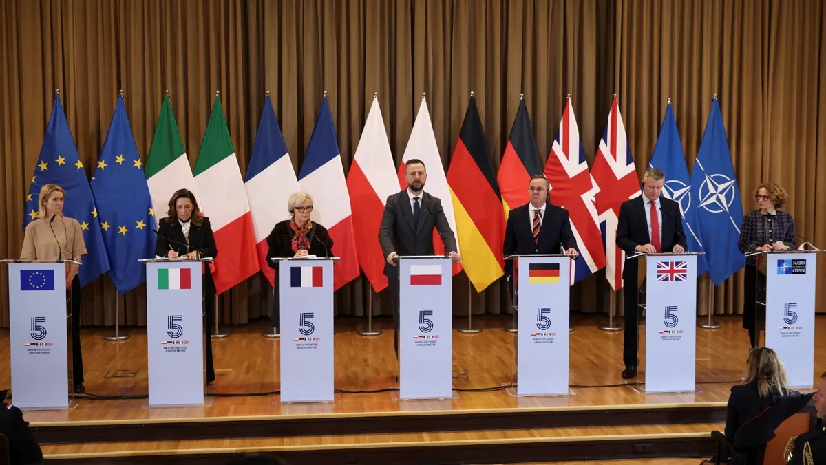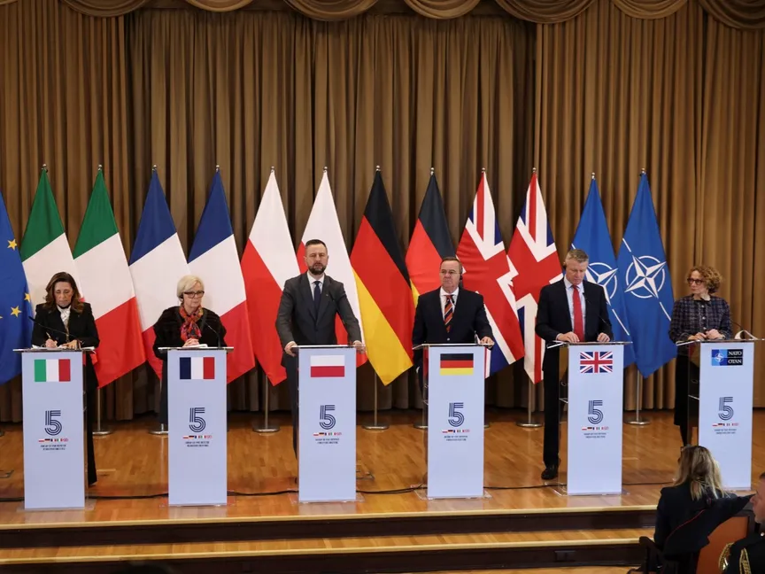 واجتمع وزراء دفاع دول مجموعة الخمس الأوروبية E5 التي تضم أكبر الدول من حيث الإنفاق العسكري في القارة، وهي فرنسا وألمانيا، وإيطاليا وبولندا وبريطانيا، في إطار جهود قادة أوروبيين لتعزيز القدرات الدفاعية، وسط تزايد الشكوك الأوروبية حول التزام واشنطن بحماية القارة.