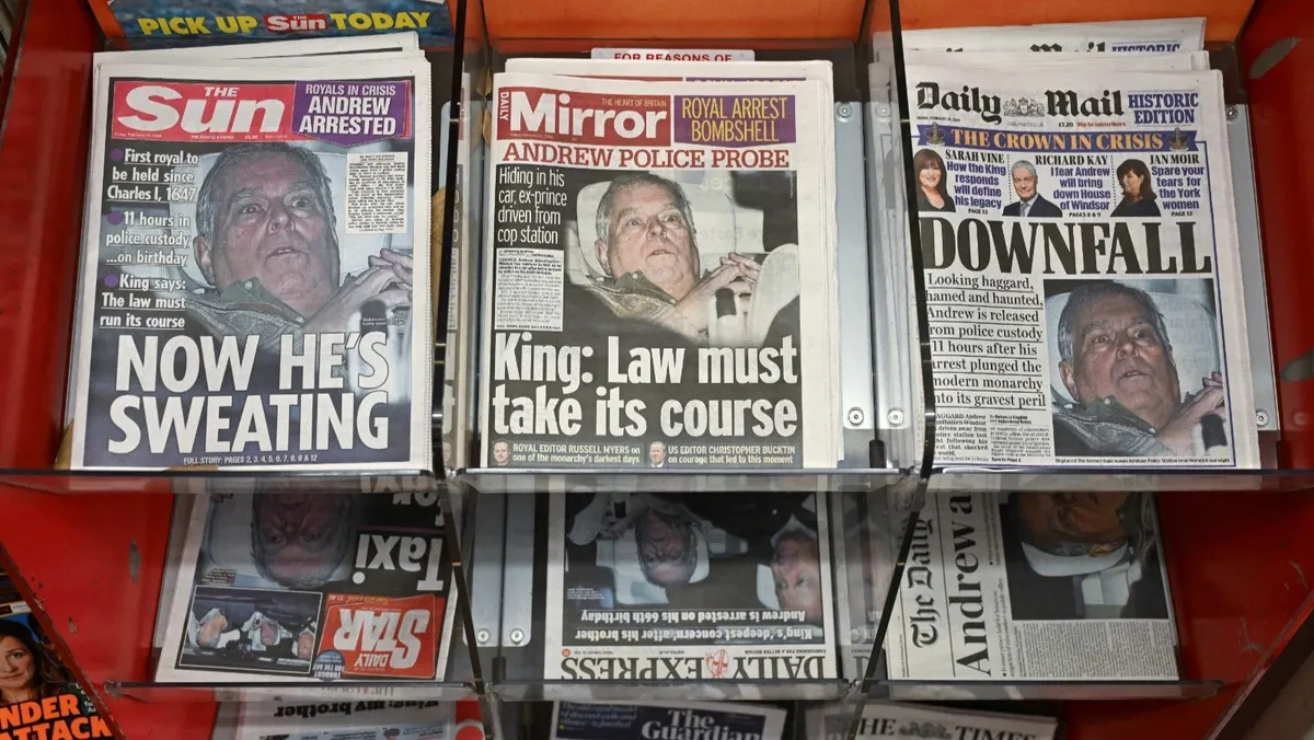 صحف بريطانية خلال تغطية خبر اعتقال الأمير السابق أندرو. 20 فبراير 2026 - Reuters