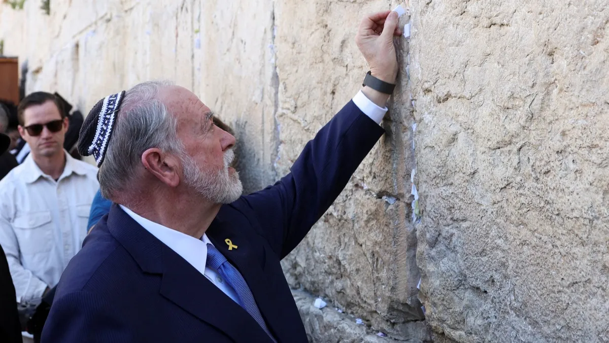 السفير الأميركي لدى إسرائيل مايك هاكابي يقف أمام حائط البراق بالبلدة القديمة بالقدس المحتلة. 18 أبريل 2025. - REUTERS