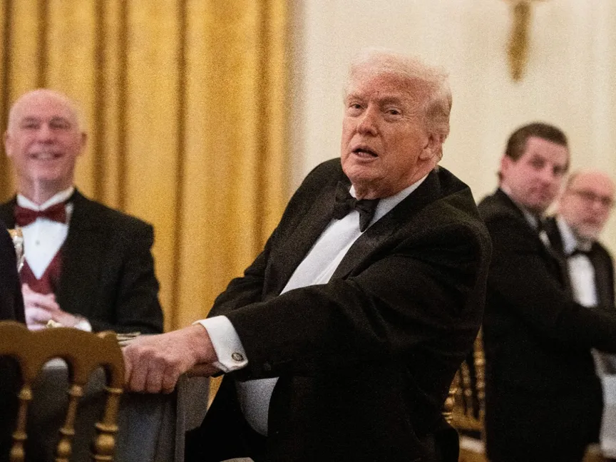 الرئيس الأميركي دونالد ترمب خلال حفل عشاء لحكام الولايات، البيت الأبيض، 21 فبراير 2026 - Reuters