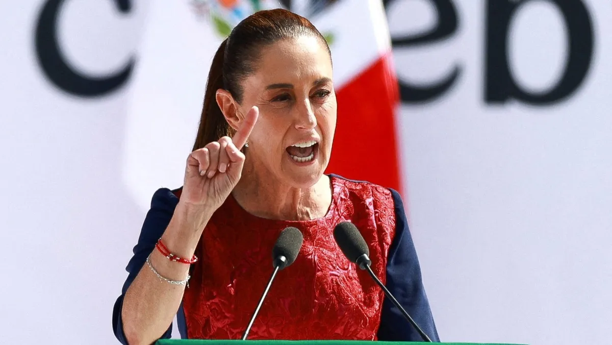 رئيسة المكسيك كلوديا شينباوم خلال فعالية في ساحة زوكالو، مكسيكو سيتي، المكسيك. 6 ديسمبر 2025 - REUTERS
