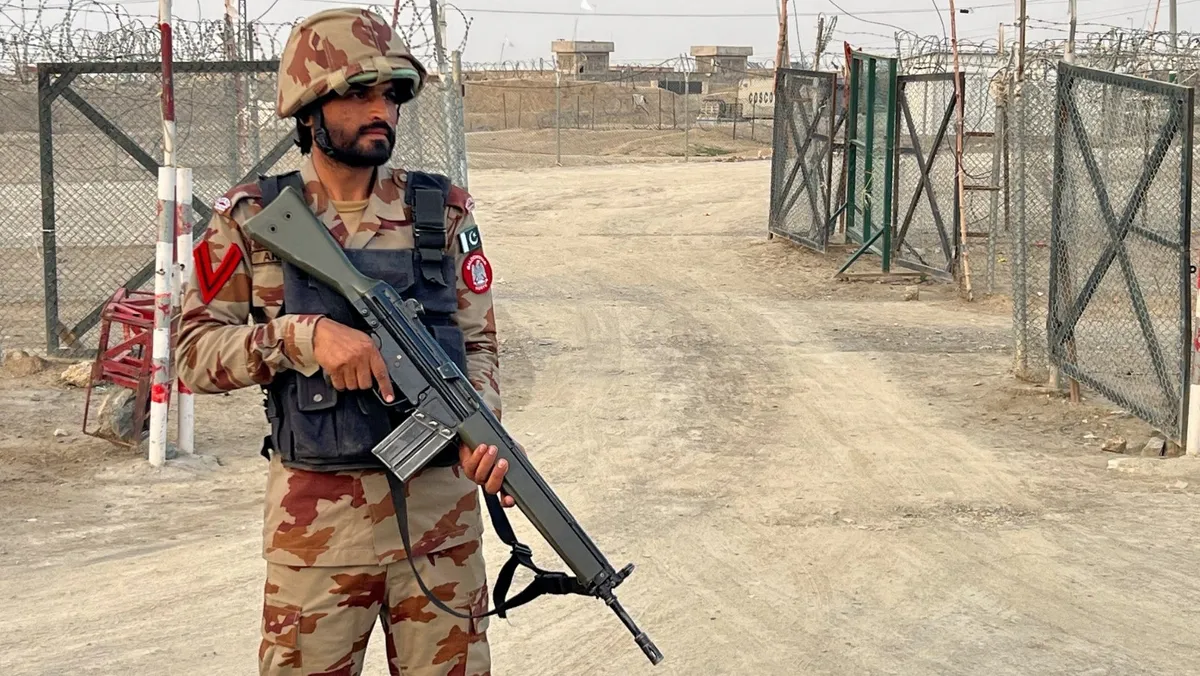جندي باكستاني يقف عند المعبر الحدودي مع أفغانستان في تشامان. 27 فبراير 2026 - Reuters