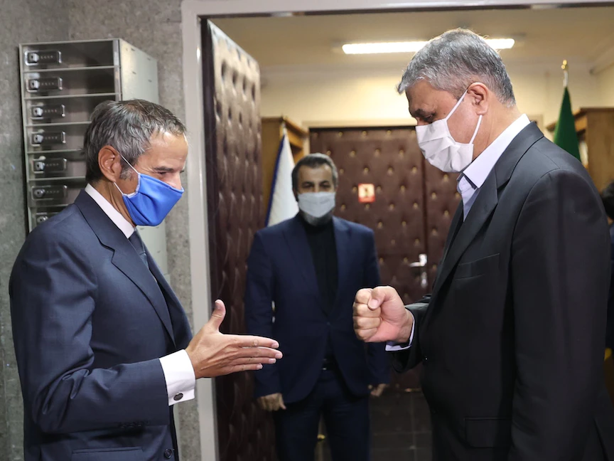 وكان جروسي قد وصل إلى طهران على رأس وفد من الوكالة الدولية، لإجراء محادثات بشأن التعاون بين إيران والوكالة، إذ كان في استقباله بالمطار مدير عام الوكالة ومساعد الشؤون القانونية والدولية والبرلمانية بمنظمة الطاقة الذرية الإيرانية بهروز كمالوندي.