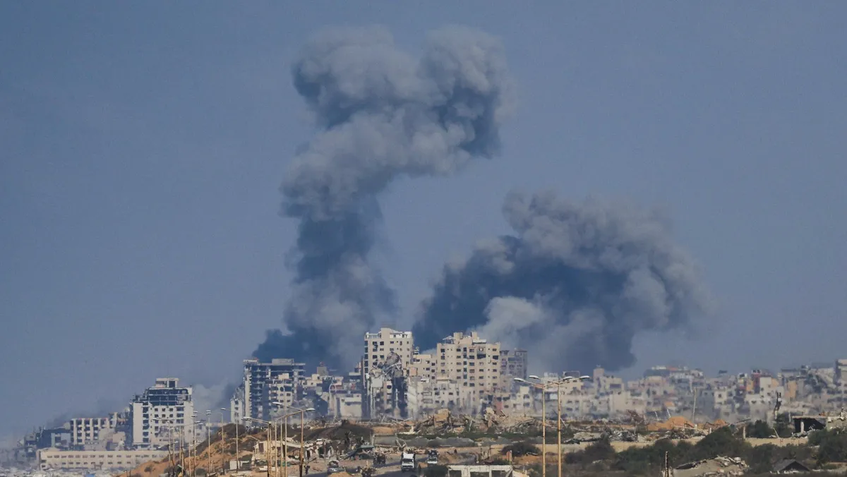تصاعد الدخان خلال عملية عسكرية إسرائيلية في مدينة غزة، كما شوهد من وسط قطاع غزة، 28 سبتمبر 2025 - REUTERS
