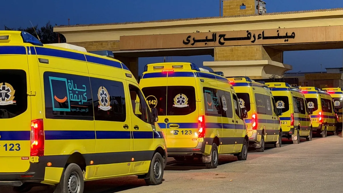 سيارات الإسعاف متجهة إلى قطاع غزة عبر معبر رفح الحدودي في رفح بمصر. 2 فبراير 2026 - Reuters